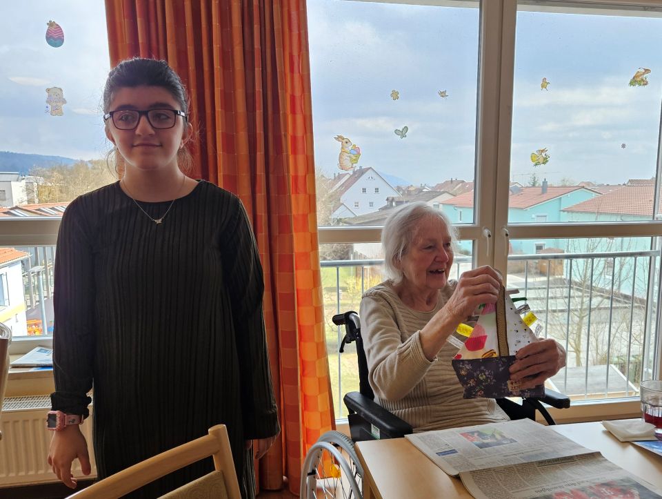 Wir bekamen eine Führung durch die Wohnanlage, wobei wir viele nette alte Menschen getroffen haben. Wir konnten uns mit ihnen unterhalten und die Demenzschiffchen verschenken. Die Freude bei den Bewohnern war meist groß.